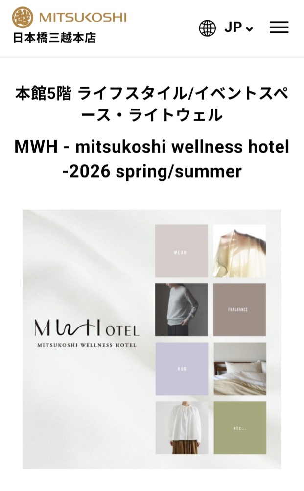 MWH-mitsukoshi wellness hotel-2026 spring/summer 日本橋三越本店に出展